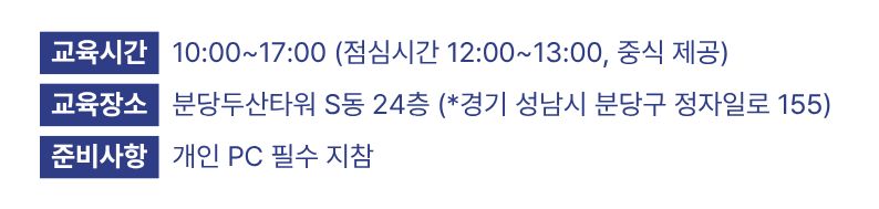 ※ 모든 결제는 기업명의로 진행되어야 하며, 개인 결제 시 환급이 불가함(환급 없이 수강 희망시 개인결제도 가능)