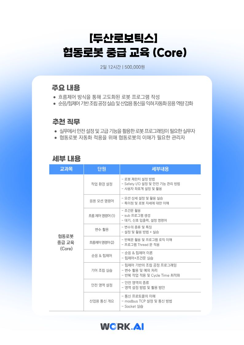 [분당][두산로보틱스] 협동로봇 중급 교육 (Core) 과정정보