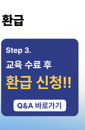 ※ 모든 결제는 기업명의로 진행되어야 하며, 개인 결제 시 환급이 불가함(환급 없이 수강 희망시 개인결제도 가능)