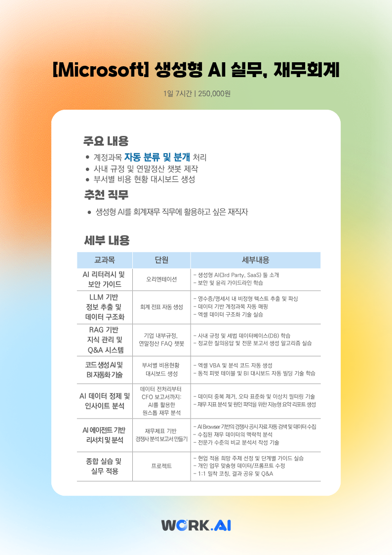 [목포상공회의소] [Microsoft] 생성형 AI 실무, 재무회계 과정정보